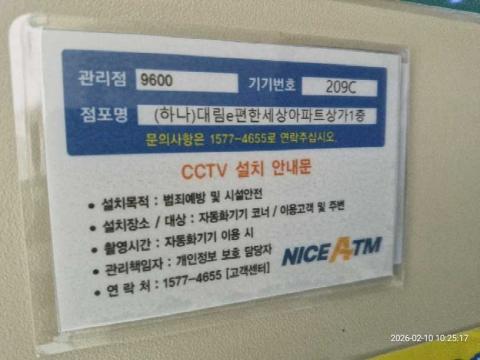 코너명: (하나)대림e편한세상아파트상가1층작업일: 2026-02-10청소형태: 간이청소회차: 1회차작업확인: 미확인전송: 대기사진수: 3시작시간: 1025마침시간: 1026 2번 읽음