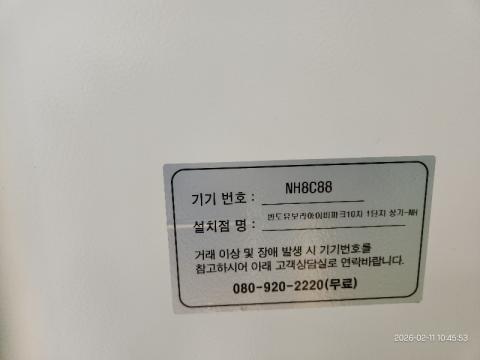 코너명: 반도유보라아이비파크10차 1단지 상가-NH작업일: 2026-02-11청소형태: 간이청소회차: 1회차작업확인: 미확인전송: 대기사진수: 3시작시간: 1042마침시간: 1045 5번 읽음