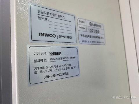 코너명: 세종시 도담동 주민센터-WOORI작업일: 2026-02-11청소형태: 간이청소회차: 1회차작업확인: 미확인전송: 대기사진수: 3시작시간: 1213마침시간: 1224 4번 읽음