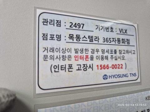 코너명: (목)목동스텔라 365자동화점작업일: 2026-02-14청소형태: (목)입점회차: 1회차작업확인: 미확인전송: 대기사진수: 4시작시간: 1219마침시간: 1221 3번 읽음