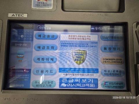 코너명: 서울디지털 프리미엄금융센터1층작업일: 2026-02-18청소형태: 간이청소회차: 1회차작업확인: 미확인전송: 대기사진수: 10시작시간: 1011마침시간: 1013 3번 읽음