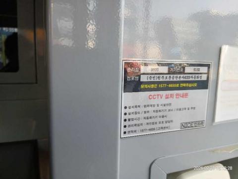 코너명: (국민)원주보훈공단본사365자동화점작업일: 2026-02-21청소형태: 간이청소회차: 1회차작업확인: 미확인전송: 대기사진수: 4시작시간: 1512마침시간: 1516 5번 읽음