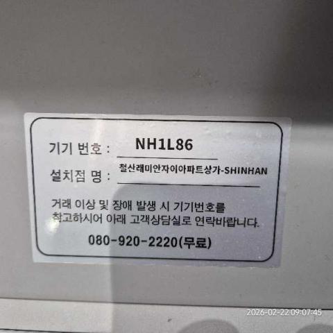 코너명: 철산래미안자이아파트상가-SHINHAN작업일: 2026-02-22청소형태: 간이청소회차: 3회차작업확인: 미확인전송: 대기사진수: 5시작시간: 0907마침시간: 0910 5번 읽음