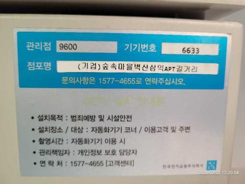 코너명: (기업)숲속마을벽산삼익APT길거리작업일: 2026-02-22청소형태: 간이청소회차: 3회차작업확인: 미확인전송: 대기사진수: 4시작시간: 1220마침시간: 1228 5번 읽음