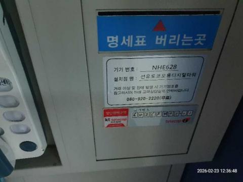 코너명: 선유도코오롱디지털타워 길거리365작업일: 2026-02-23청소형태: 간이청소회차: 1회차작업확인: 미확인전송: 대기사진수: 4시작시간: 1236마침시간: 1243 6번 읽음