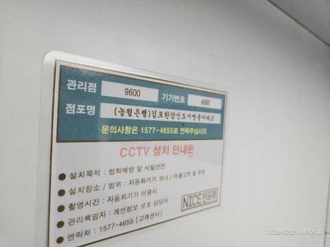 코너명: (농협은행)김포한강신도시쌍용아파트작업일: 2026-02-25청소형태: 간이청소회차: 1회차작업확인: 미확인전송: 대기사진수: 3시작시간: 0952마침시간: 0953 5번 읽음