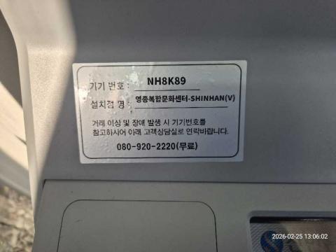 코너명: 영종복합문화센터-SHINHAN(V)작업일: 2026-02-25청소형태: 간이청소회차: 3회차작업확인: 미확인전송: 대기사진수: 4시작시간: 1306마침시간: 1319 5번 읽음