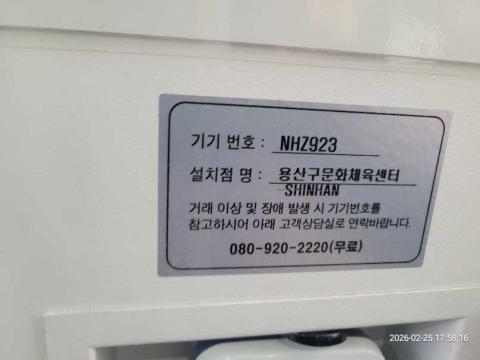 코너명: 용산구문화체육센터-SHINHAN작업일: 2026-02-25청소형태: 간이청소회차: 3회차작업확인: 미확인전송: 대기사진수: 4시작시간: 1758마침시간: 1802 2번 읽음