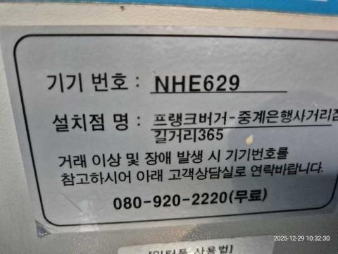 코너명: 프랭크버거-중계은행사거리점 길거리365작업일: 2025-12-29청소형태: 간이청소회차: 5회차작업확인: 미확인전송: 대기사진수: 5시작시간: 1032마침시간: 1034 5번 읽음