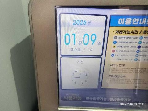 코너명: 전남장애우권익문제연구소365자동화점-KB작업일: 2026-01-09청소형태: 간이청소회차: 2회차작업확인: 미확인전송: 대기사진수: 7시작시간: 0855마침시간: 0902 5번 읽음