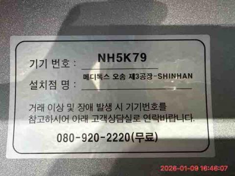 코너명: 메디톡스 오송 제3공장-SHINHAN작업일: 2026-01-09청소형태: 간이청소회차: 1회차작업확인: 미확인전송: 대기사진수: 4시작시간: 1646마침시간: 1649 2번 읽음