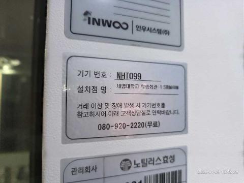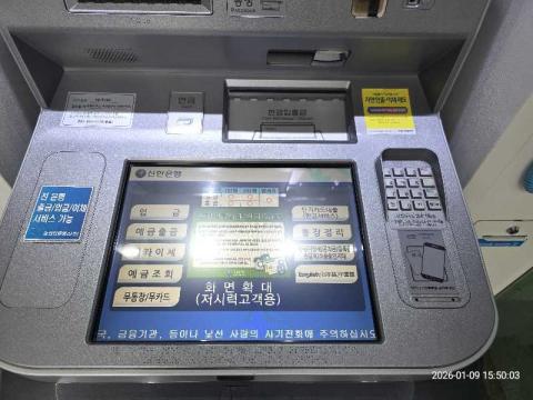 코너명: 세명대학교 학생회관1-SHINHAN작업일: 2026-01-09청소형태: 간이청소회차: 1회차작업확인: 미확인전송: 대기사진수: 5시작시간: 1548마침시간: 1551 1번 읽음