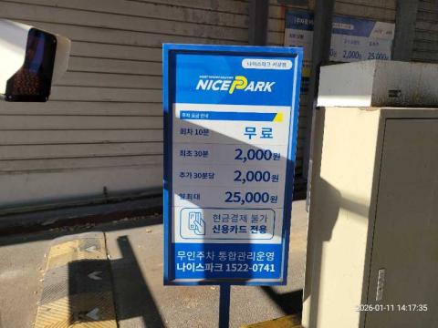 코너명: 나이스파크 서강점작업일: 2026-01-11청소형태: 간이청소회차: 1회차작업확인: 미확인전송: 완료전송메시지: {"resultCd":"1","resultMsg":"정상 처리 되었습니다."}사진수: 21시작시간: 1417마침시간: 1428 2번 읽음
