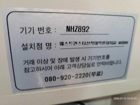 코너명: 웨스트민스터신학대학원대학교-WOORI작업일: 2026-01-12청소형태: 간이청소회차: 2회차작업확인: 미확인전송: 대기사진수: 3시작시간: 1423마침시간: 1434 5번 읽음