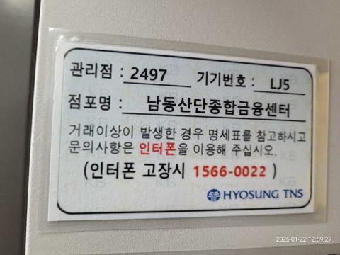 코너명: (목)남동산단종합금융센터 365자동화점작업일: 2026-01-22청소형태: (목)입점회차: 1회차작업확인: 미확인전송: 대기사진수: 5시작시간: 1259마침시간: 1304 1번 읽음