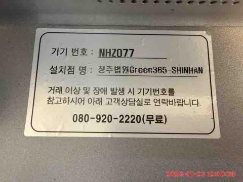 코너명: 청주법원Green365-SHINHAN작업일: 2026-01-23청소형태: 간이청소회차: 1회차작업확인: 미확인전송: 대기사진수: 4시작시간: 1200마침시간: 1204 3번 읽음