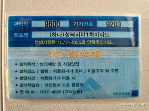 코너명: (하나)성복자이1차아파트작업일: 2026-02-07청소형태: 대청소회차: 1회차작업확인: 미확인전송: 완료전송메시지: {"resultCd":"1","resultMsg":"정상 처리 되었습니다."}사진수: 14시작시간: 1700마침시간: 1711
