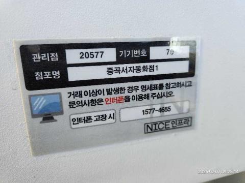코너명: 중곡서자동화점작업일: 2026-02-07청소형태: 대청소회차: 1회차작업확인: 미확인전송: 완료전송메시지: {"resultCd":"1","resultMsg":"정상 처리 되었습니다."}사진수: 16시작시간: 0925마침시간: 0934