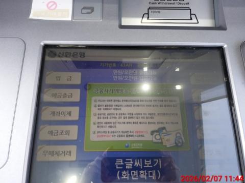 코너명: (신한)한국정보화진흥원제주청사작업일: 2026-02-07청소형태: 대청소회차: 1회차작업확인: 미확인전송: 완료전송메시지: {"resultCd":"1","resultMsg":"정상 처리 되었습니다."}사진수: 11마침시간: 2156
