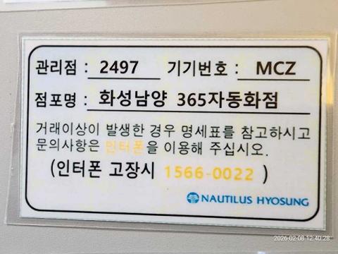코너명: 화성남양 365자동화점작업일: 2026-02-08청소형태: 대청소회차: 1회차작업확인: 미확인전송: 완료전송메시지: SUCCESS_COUNT=(18), ERROR_COUNT=(0), RESULT_CODE=(0), RESULT_MESSAGE=(업로드 성공)사진수: 18마침시간: 1259 1번 읽음