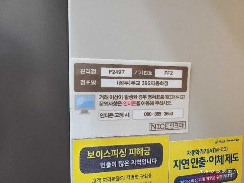 코너명: 무교 365자동화점작업일: 2026-02-08청소형태: 대청소회차: 1회차작업확인: 미확인전송: 완료전송메시지: {"resultCd":"1","resultMsg":"정상 처리 되었습니다."}사진수: 18시작시간: 0902마침시간: 0907