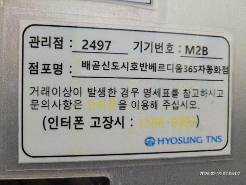 코너명: 배곧신도시호반베르디움 365자동화점작업일: 2026-02-19청소형태: 대청소회차: 2회차작업확인: 미확인전송: 완료전송메시지: SUCCESS_COUNT=(16), ERROR_COUNT=(0), RESULT_CODE=(0), RESULT_MESSAGE=(업로드 성공)사진수: 16시작시간: 0703마침시간: 0717 5번 읽음