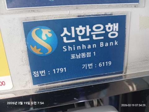 코너명: 포남동점작업일: 2026-02-19청소형태: 대청소회차: 1회차작업확인: 미확인전송: 완료전송메시지: {"resultCd":"1","resultMsg":"정상 처리 되었습니다."}사진수: 18시작시간: 0742마침시간: 0757 1번 읽음