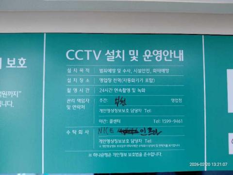 코너명: 한신APT작업일: 2026-02-20청소형태: 대청소회차: 1회차작업확인: 미확인전송: 완료전송메시지: {"resultCd":"1","resultMsg":"정상 처리 되었습니다."}사진수: 16시작시간: 1314마침시간: 1321
