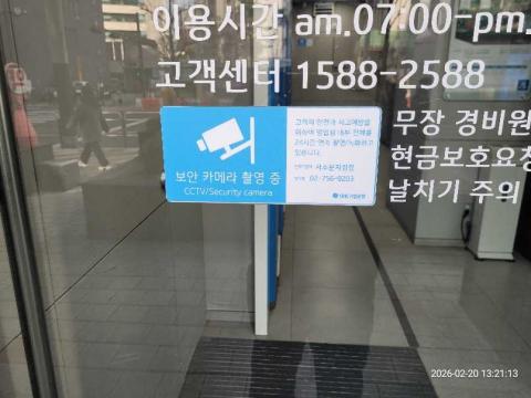 코너명: 서소문점 1층(무인)작업일: 2026-02-20청소형태: 대청소회차: 1회차작업확인: 미확인전송: 완료전송메시지: SUCCESS_COUNT=(19), ERROR_COUNT=(0), RESULT_CODE=(0), RESULT_MESSAGE=(업로드 성공)사진수: 19시작시간: 1315마침시간: 1326 1번 읽음