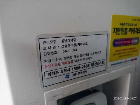 코너명: 선경상대원2차아파트작업일: 2026-02-23청소형태: 대청소회차: 1회차작업확인: 미확인전송: 완료전송메시지: SUCCESS_COUNT=(19), ERROR_COUNT=(0), RESULT_CODE=(0), RESULT_MESSAGE=(업로드 성공)사진수: 19시작시간: 1427마침시간: 1444