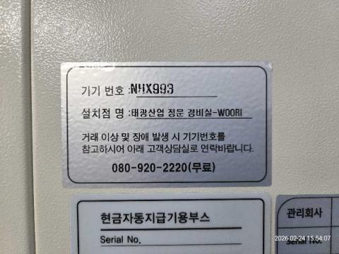 코너명: 태광산업 정문 경비실-WOORI작업일: 2026-02-24청소형태: 대청소회차: 1회차작업확인: 미확인전송: 대기사진수: 11시작시간: 1554마침시간: 1559 1번 읽음