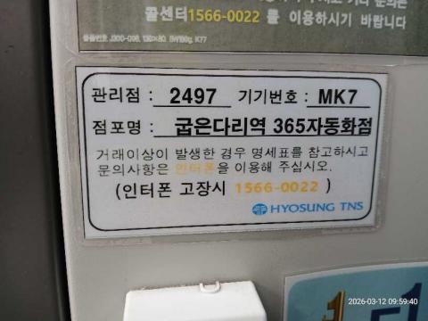 코너명: (목)굽은다리역 365자동화점작업일: 2026-03-12청소형태: (목)입점회차: 1회차작업확인: 미확인전송: 대기사진수: 4시작시간: 0959마침시간: 1003 1번 읽음